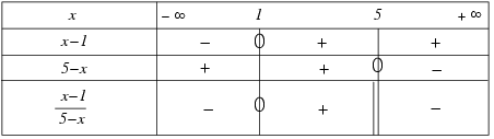 Solution : Le dénominateur $5-x$ s'annule pour $x=5$. Il faut donc une double barre pour $x=5$. Le numérateur s'annule pour $x=1$. Il faut donc un $0$ pour $x=1$.